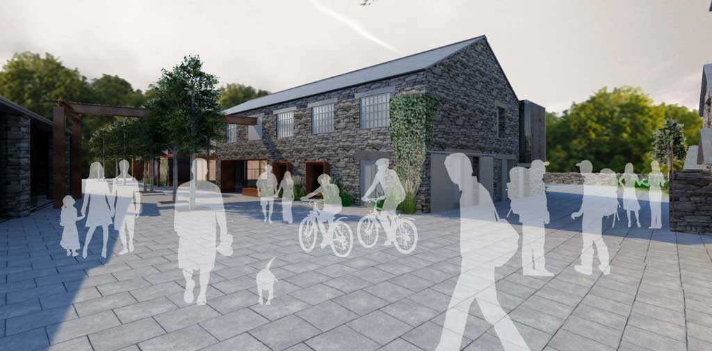 The multi-million pound proposals for the site respect the existing buildings, history and context; with a conservation-sensitive, mixed-use development which retains and refurbishes the historic stone wall and slate roofed buildings, representative of the local vernacular. Lesser quality, modern steel-framed, concrete and sheet-metal clad buildings and warehouses will be carefully removed and replaced by sensitively designed, high-quality architecture that will sit comfortably within this unique site.