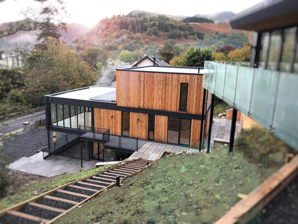 MGA have completed a stunning new build with separate studio developments on the hillside above the shores of Ullswater maximising the spectacular views. The rectilinear design includes a blend of both traditional and contemporary materials, with sheets of open glazing, to emphasise the cuboid shape that follows the contours of the hillside. The studio, located above the main house, perched on the steep topography projects at if on stilts, again with open views and glazed balconies. This innovative design is a clear demonstration of the LDNPA wish to promote progressive designs within the world heritage site.