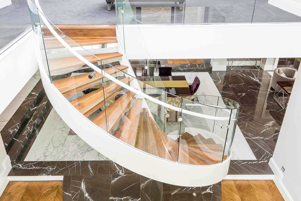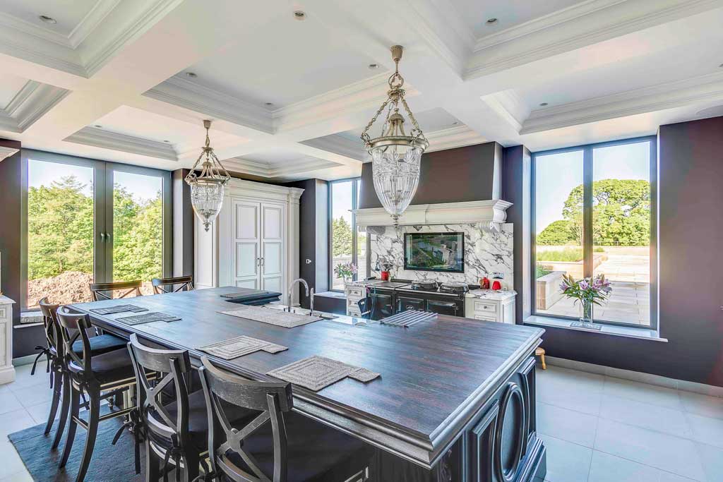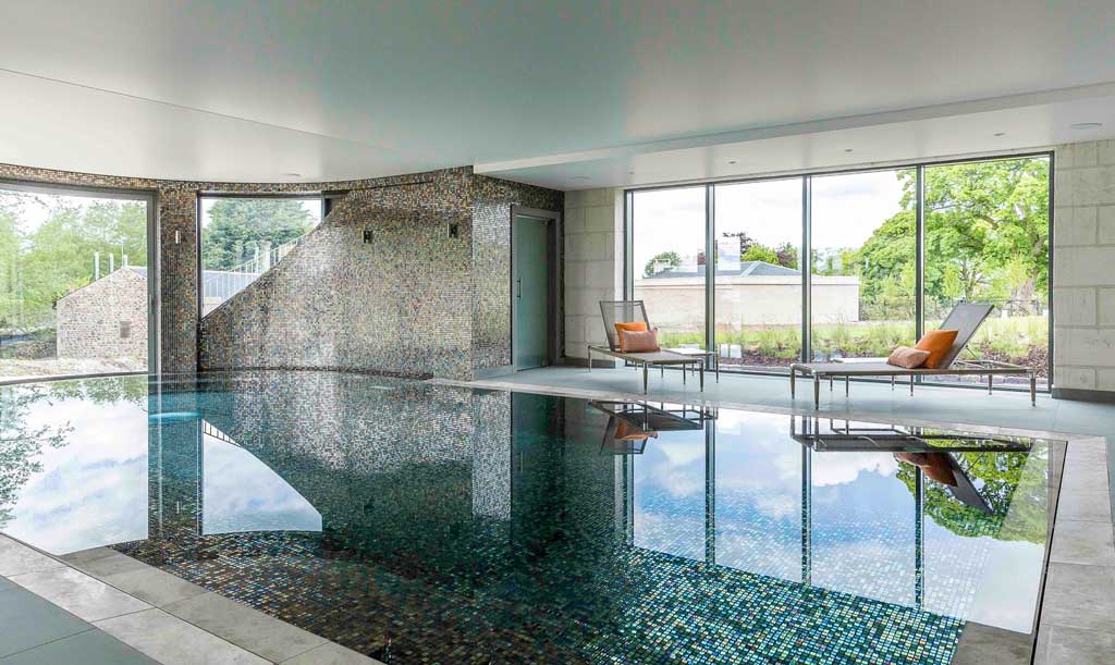 The house incorporates a basement level swimming pool, underground car garage, double height atrium living space and separate contemporary summerhouse.