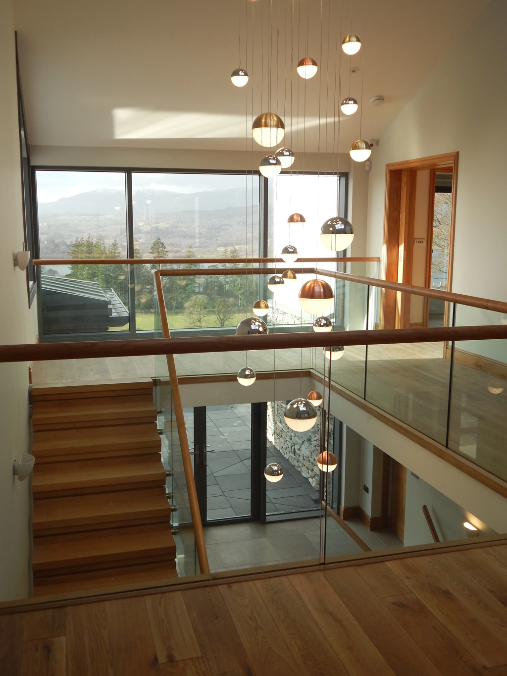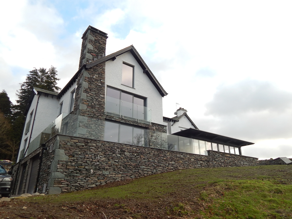 Beautiful Lake District stonework runs throughout, punctuated with elegant glazed panels set back from the exterior façade and accentuated by classic white rendered elevations. The use of regional materials and finishes roots the property in its setting.